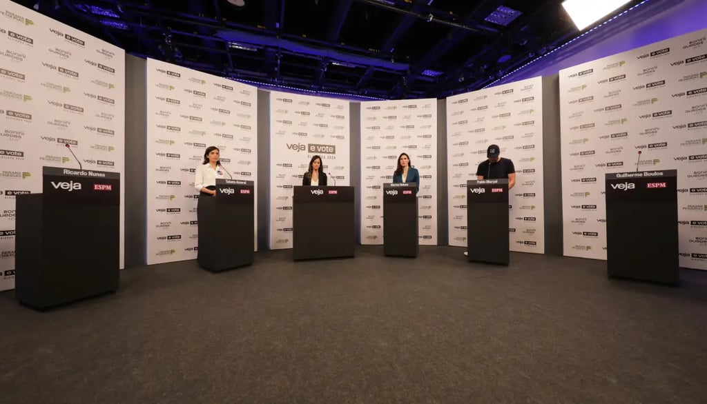 Na imagem Candidatos participam de debate de VEJA sobre a disputa em São Paulo (Antonio Milena/VEJA). Artigo originalmente publicado em Revista Veja, no dia 16/09/24 ver mais em: https://veja.abril.com.br/coluna/matheus-leitao/por-que-a-tv-nao-morreu-ou-ressuscitou-nestas-eleicoes/